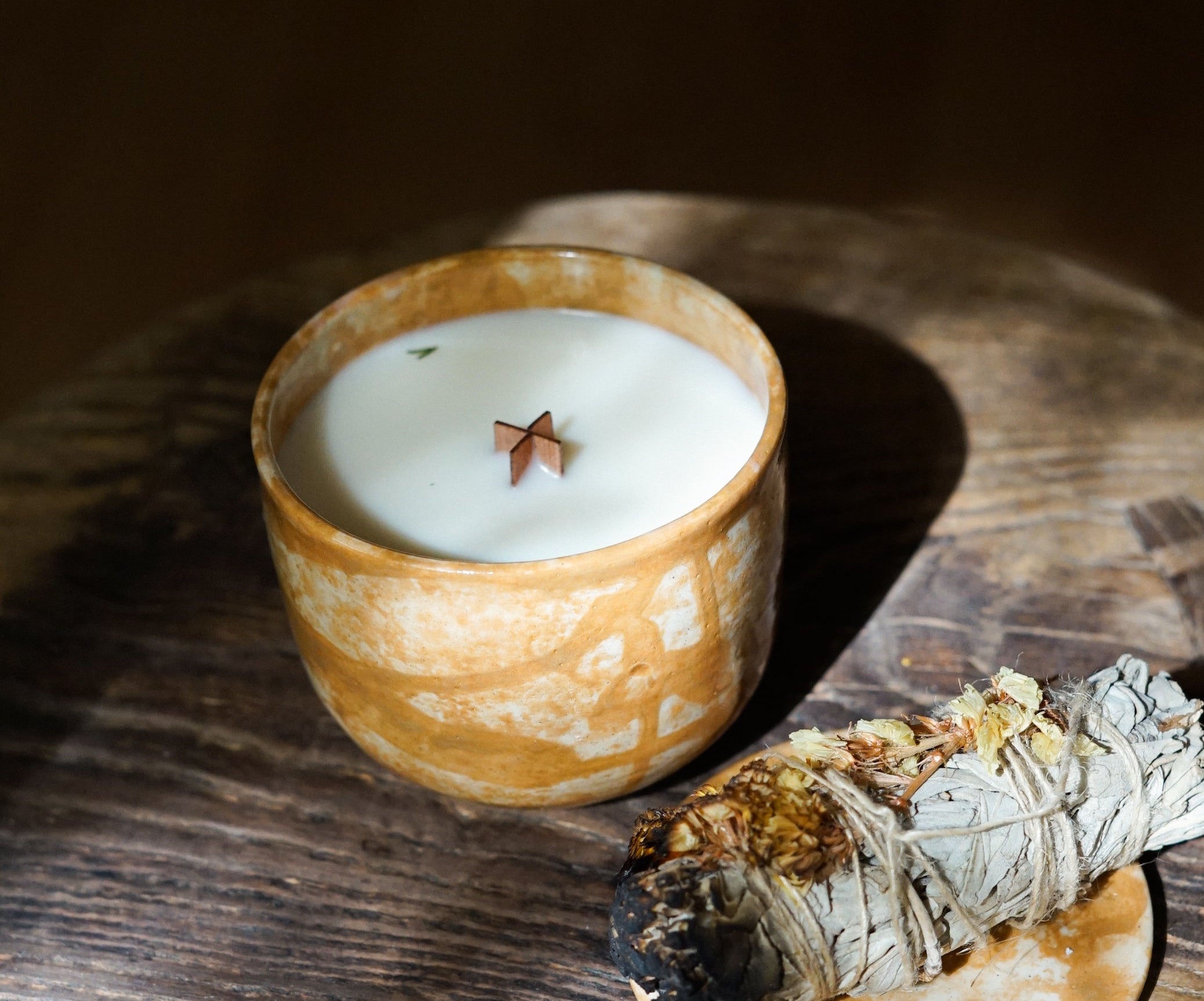 Esta vela ha sido creada en España, ceramica moldeada y pintada a mano, pieza a pieza, por artesanos que dan forma a lo singular. Cada recipiente es único, con el alma de lo imperfecto y la belleza de lo auténtico. Cuando la llama se apague, comienza su nueva vida: conviértelo en taza, cuenco o lo que tu imaginación proponga. Un objeto que trasciende el uso, pensado para quedarse contigo.