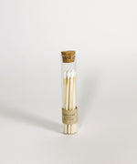 Un elegante tubo de vidrio de cerillas extralargas, ideal para realzar el ritual de encender velas con un toque especial. Estas cerillas de madera, con su longitud ampliada, ofrecen una combustión más duradera y segura. Con un rascador en la base del tubo, están diseñadas para un encendido sencillo y práctico.